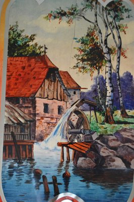 Miroir Art Nouveau avec Peinture d'un Paysage & Structure en Noyer Sculpté, France, 1900s en vente sur Pamono